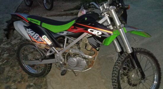 LEBAK – Sebuah sepeda motor (R2) jenis Kawasaki KLX, Warna Hijau, Tahun Pembuatan/Perakitan 2017/2017, Isi Si linder 150 CC, Nomor Rangka MH4LX150FHJP41728,