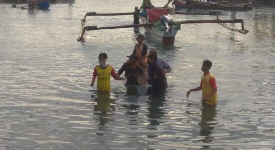 LEBAK– Galih (17), santri asal Petir, Kabupaten Serang yang tersert6 ombak di Pantai Karang Seke, Desa Muara, Kecamatan Wanasalam Sabtu (19/6/2021) sore,