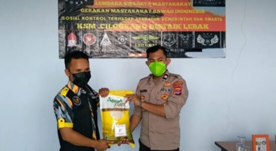 LEBAK – Secara simbolis, bantuan tersebut diserahkan langsung oleh anggota Polsek Cilograng Briptu Nika Kurnia dan Ipda Ujang Sumantri kepada LSM Gerakan