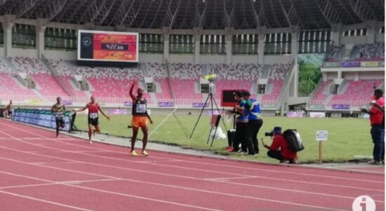 JAYAPURA–Atlet tuan rumah merebut medali emas pertama Pekan Paralimpik Nasional (Peparnas) XVI Papua dari cabang olahraga para-atletik yang berlangsung di Stadion Lukas