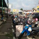 Pandeglang –  Hampir separuh badan jalan umum di depan Pasar Badak Pandeglang saat ini dijadikan tempat parkir kendaraan roda dua dan roda