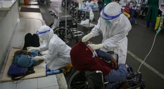 Petugas Medis Melakukan Tes Usap PCR Terhadap Pasien COVID-19
