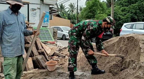 CILEGON – Koramil 2303/ Pulomerak Kodim 0623/Cilegon melaksanakan giat kerja bakti bersama masyarakat wilayah Koramil Pulomerak Kota Cilegon Provinsi Banten, Senin (22/02/2021)