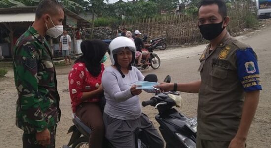 LEBAK – Posko PPKM Darurat Pasar Sampay terus giat bagikan Masker pada pengunjung Pasar Sampay yang melanggar Protokol Kesehatan ( Prokes )