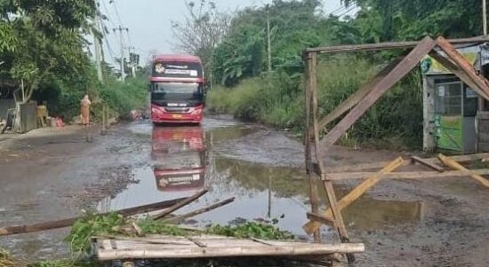 Warga Perumahan Banjar Agung Kota Serang Lakukan Pemblokiran Jalan