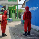JAKARTA – Suku Dinas Penanggulangan Kebakaran dan Penyelamatan (Sudin Gulkarmat) Jakarta Utara dan Kepulauan Seribu melakukan disinfeksi rumah warga terpapar Covid-19 di