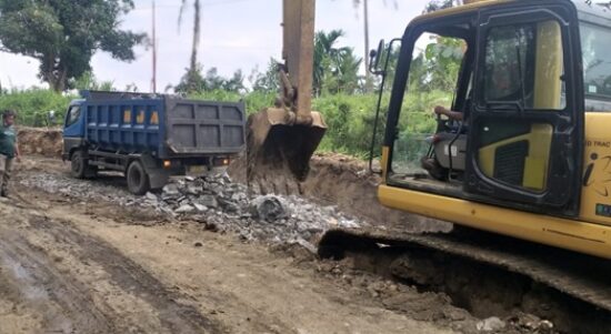 PANDEGLANG – PT. Rizki Banten Berlian (RBB) bersama masyarakat melaksanakan kegiatan pengkerukan dan perbaikan jalan jalur Curugciung – Cikadongdong, yaitu tepatnya di