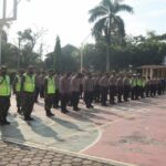 Polda Banten Melaksanakan Apel Pengamanan Kegiatan Doa Bersama dan Pembagian Sembako