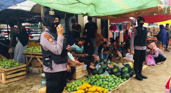 SERANG – Dalam rangka menekan penyebaran Covid-19 Patroli Nong Jawara Ditsamapta Polda Banten melaksanakan patroli dialogis yang dilakukan di Pasar Kalodran kabupaten