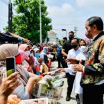 BLORA – Aktivitas jual beli di Pasar Mulyorejo mendadak berhenti, setelah kedatangan Presiden RI Joko Widodo. Dengan antusias, baik pedagang dan pembeli