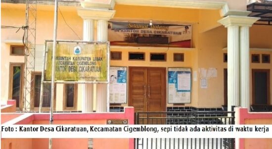 LEBAK – Kantor pemerintahan Desa Cikaratuan,Kecamatan Cigemblong, Kabupaten Lebak, Provinsi Banten sepi atau tidak ada aktivitas kerja di hari kerja, pada Rabu