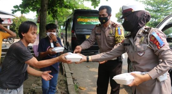 Sat Lantas Polres Pandeglang Bagikan Makanan Gratis