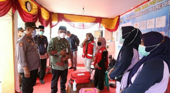 Pandeglang – Sekda di dampingi Kepala Dinas Komunikasi Informatika Sandi dan Statistik Girgijantoro lakukan pemantauan di Pos Penyekatan Arus Mudik di Perbatasan