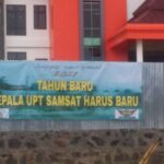 LEBAK – Sebagai bentuk protes, Laskar Pasundan Indonesia (LPI) melakukan pemasangan spanduk yang bertuliskan “Happy New year 2021, Tahun Baru Kepala Samsat