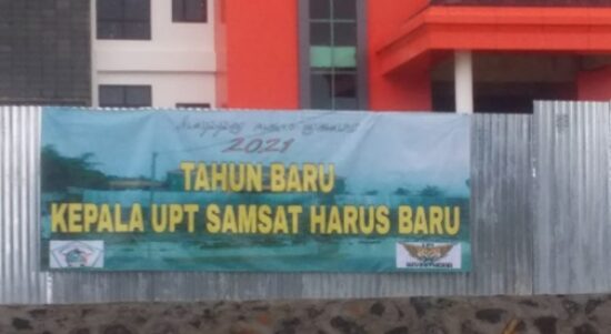 LEBAK – Sebagai bentuk protes, Laskar Pasundan Indonesia (LPI) melakukan pemasangan spanduk yang bertuliskan “Happy New year 2021, Tahun Baru Kepala Samsat