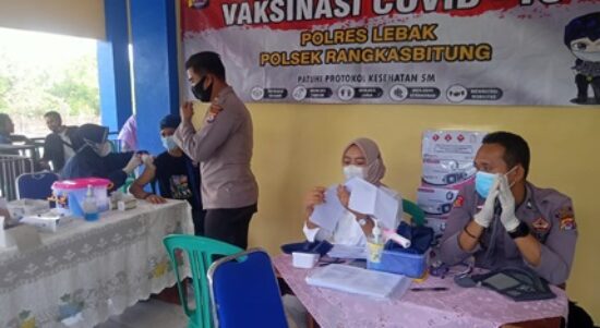 LEBAK – Untuk mendukung Program Vaksinasi Nasional, Polsek Rangkasbitung Polres Lebak Polda Banten terus intens melaksanakan gebyar vaksinasi Covid-19 bagi Warga Kecamatan