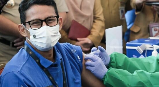 Jakarta – Menteri Pariwisata dan Ekonomi Kreatif/Kepala Badan Pariwisata dan Ekonomi Kreatif Sandiaga Salahuddin Uno melakukan peninjauan sentra vaksinasi COVID-19 bagi pelaku pariwisata