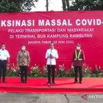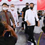 Jakarta – Presiden Joko Widodo meninjau vaksinasi Covid-19 terhadap sebanyak 1.000 pelaku transportasi dan juga pelaku usaha kecil dan mikro (UKM) di
