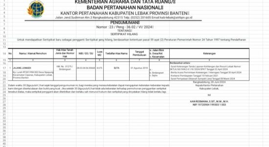 # Warga Kecamatan Cipanas Kehilangan Sertifikat Tanah