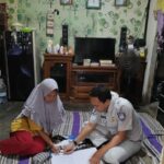 SERANG – Petugas Samsat Kota Serang Rangga Figur Rachman melakukan survey ahli waris yang berada di kediaman korban kecelakaan lalu lintas atas