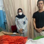 CILEGON – Petugas Jasa Raharja Samsat Gerai Bojonegara, Riska Marlita, mengunjungi Korban Kecelakaan Lalu Lintas yang bernama Ilham Nur Fazli berusia 19