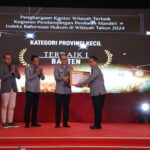 JAKARTA – Kantor Wilayah Kementerian Hukum dan HAM Banten terima penghargaan Kantor Wilayah Terbaik Kegiatan Pendampingan Penilaian Mandiri Indeks Reformasi Hukum di