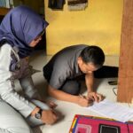 TANGERANG – Petugas Jasa Raharja Tangerang Rita Yunita melakukan survey ahli waris di kediaman keluarga korban Rodiyah yang mengalami laka lantas tertabrak
