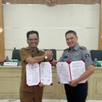 SERANG – Kepala Kantor Wilayah Kementerian Hukum dan HAM Banten, Romi Yudianto dampingi Sekretaris Sewan (Sekwan) DPRD Kota Serang, Ahmad Nuri dalam