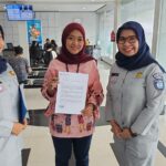 TANGERANG – Petugas Jasa Raharja Perwakilan Tangerang Riska Amelia dan Shinta untuk Samsat Cikokol mengunjungi PT. Bank Rakyat Indonesia Cabang Tangerang. Kedatangan