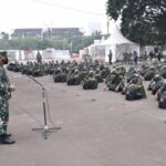 Kapuskes TNI Mayjen TNI Tugas Ratmono, selaku Koordinator Rumah Sakit Darurat Covid-19 (RSDC) Wisma Atlet Kemayoran, menyambut kedatangan 176 Tenaga Kesehatan TNI