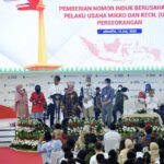 JAKARTA – Presiden RI Joko Widodo (Jokowi) memberikan Nomor Induk Berusaha (NIB) bagi pelaku Usaha Mikro Kecil (UMK) perseorangan, Rabu (13/07/2022) pagi, di
