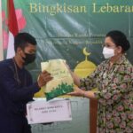 Dharma Wanita Persatuan Sekretariat Kabinet RI (DWP Setkab RI) menyerahkan bingkisan Idulfitri 1443 Hijriah bagi anak yatim, pegawai purnabakti atau pensiunan, petugas