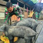 Intan Jaya – Satgas Pamtas Mobile RI-PNG Yonif 509 Kostrad terus berupaya memberdayakan masyarakat Papua dalam bidang perternakan dengan membudidayakan ternak babi