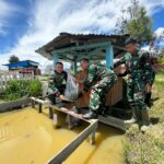 Intan Jaya – Papua Satgas Mobile Yonif 509 Kostrad Condromowo melaksanakan Penanaman Sayur dan penaburan benih ikan sebagai wujud Integrated Farming dengan