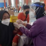 TEMANGGUNG – Sejumlah 136 orang warga binaan di Rumah Tahanan Kelas II-B Kabupaten Temanggung, mengikuti vaksinasi Covid-19, di Aula Rutan setempat, Rabu